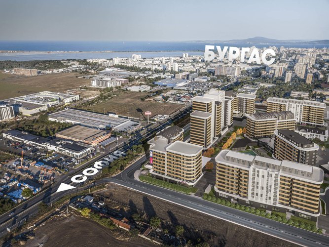 Новейший жилой комплекс „Азимут“ – это мини-городок с удобной многообразной инфраструктурой в новейшем районе морского города Бургаса „Мадика“. Местность расположена северо-западно от центра, и является естественным направлением расширения города, который омывается тремя озерами и Черным морем. Мадика – это один из самых быстро развивающихся районов Бургаса, с динамичной жилой и бизнес застройкой и хорошей инфраструктурой: новые улицы, остановки для городского транспорта, современная многопрофильная больница, рядом государственный университет, крупные супермаркеты, а так же плавный выезд на главную дорожную артерию города. Здесь просторно и красиво. До центра города, до богато озелененного обустроенного морского парка и песчаного пляжа всего 5 мин езды.