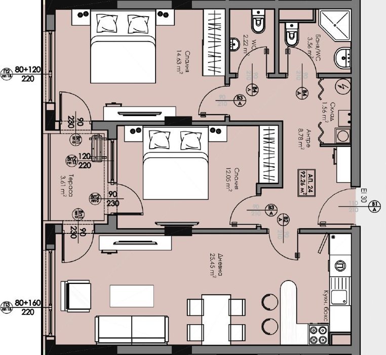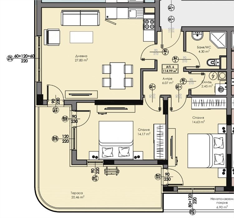 Такса поддержки в комплексе: 5 евро/м2 в год.