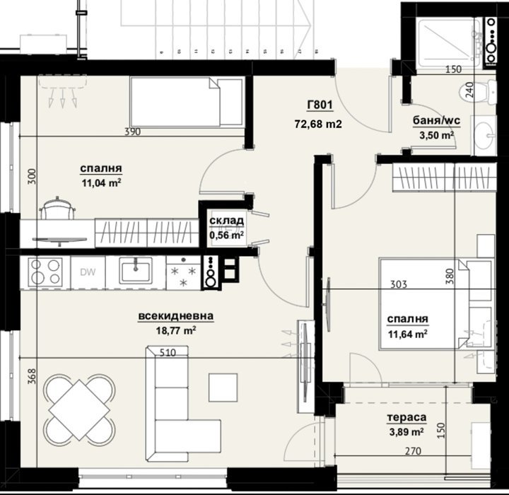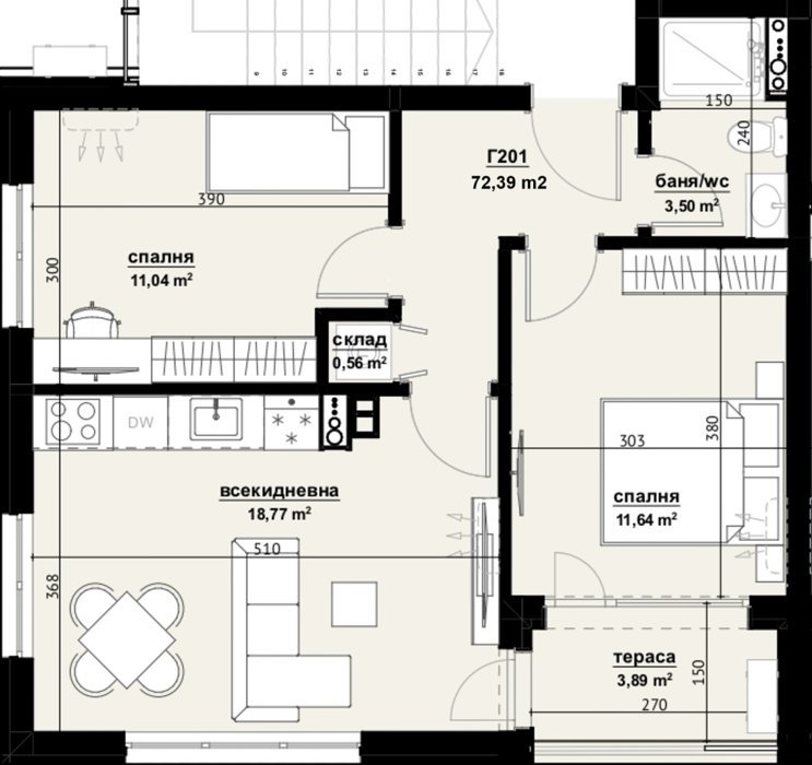 Площадь от 72 м2